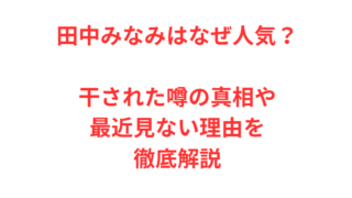 田中みなみはなぜ人気?干された噂の真相や最近見ない理由を徹底解説 田中みなみが圧倒的な支持を集め続ける現在の立ち位置田中...