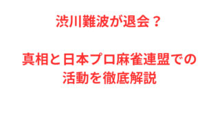 ◆トレンド◆ 渋川難波が退会?真相と日本プロ麻雀連盟での活動を徹底解説