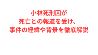 ◆トレンド◆ 小林死刑囚が死亡との報道を受け、事件の経緯や背景を徹底解説