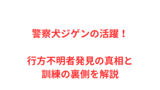 警察犬ジゲンの活躍!行方不明者発見の真相と訓練の裏側を解説警察犬は、その鋭い嗅覚と優れた身体能力を駆使して、事件の解決や...